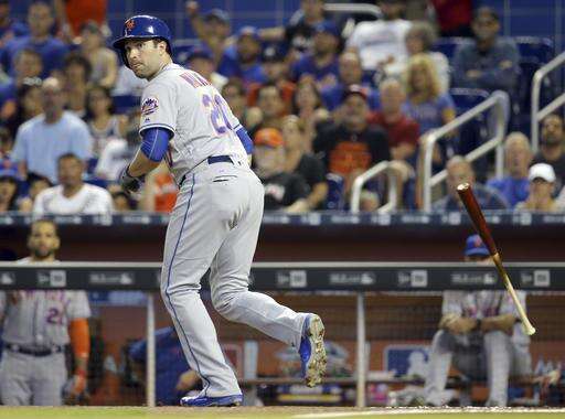 New York Mets' Neil Walker tosses his bat after striking out swinging during the first inning of a baseball game against the Miami Marlins, Sunday, June 5, 2016, in Miami. (AP Photo/Lynne Sladky) The Associated Press