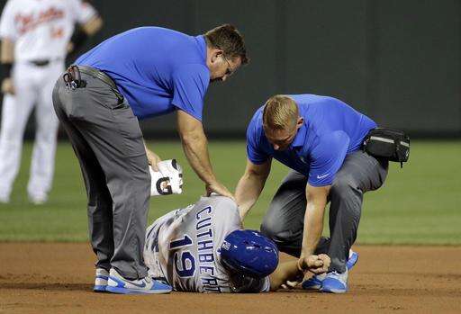 Paulo Orlando and Cheslor Cuthbert hit singles in the Kansas City seventh before Jarrod Dyson chopped a grounder to Machado at shortstop. After Jonathan Schoop got the force at second base, he changed his mind about throwing to first while his arm was in motion. He released the ball, which bounced off the right elbow of the sliding Cuthbert and rolled away, allowing Orlando to score.