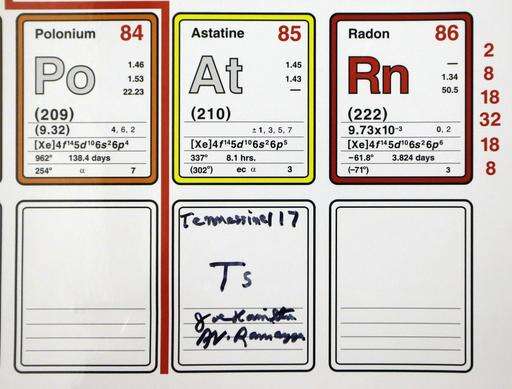 NEW YORK (AP) - You'll soon see four new names on the periodic table of the elements, including three that honor Moscow, Japan and Tennessee.