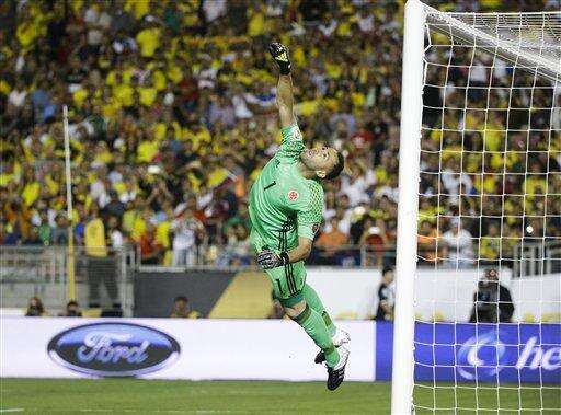 Colombia became the first team to secure advancement to the knockout stage of the tournament with stellar goaltending from David Ospina and another dynamic performance from Rodriguez, who shook off a shoulder problem that made his availability a game-time decision at the Rose Bowl.
