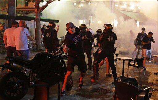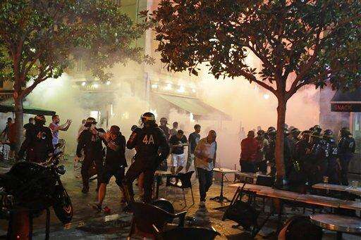 Tear gas drifted through the air and broken glass crunched underfoot in one of France's best-known tourist districts, raising concerns at what might follow when Saturday night's game ends.