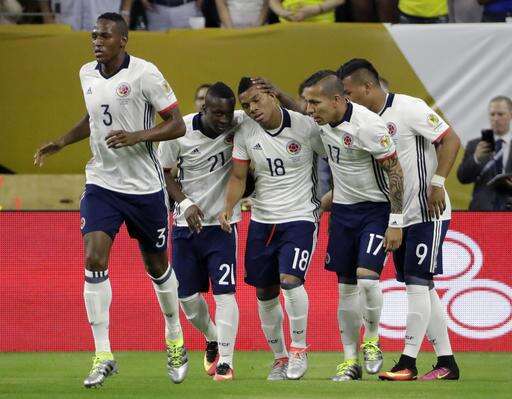 Colombia's Marlos Moreno cut it to 3-2 with a perfect strike to the near post in the 73rd minute.