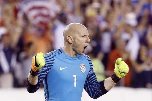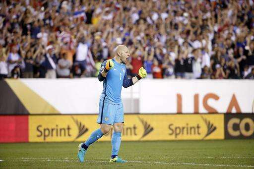 United States' Brad Guzan celebrates after winning a Copa America Group A soccer match against Paraguay, Saturday, June 11, 2016, in Philadelphia. (AP Photo/Matt Rourke) The Associated Press