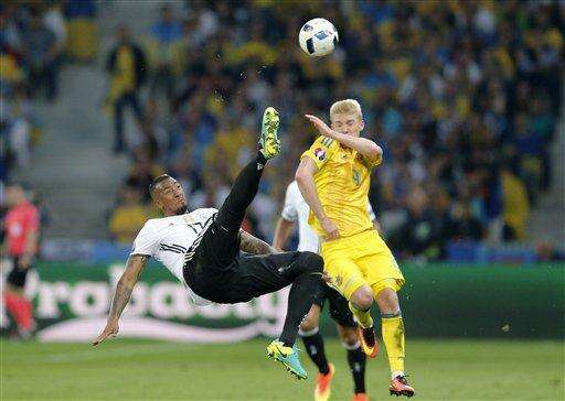 Although playing in central defense, Boateng also stepped in when Germany backs Jonas Hector and Benedikt Hoewedes failed to stop the versatile Ukraine wingers, Andriy Yarmolenko and Yevhen Konoplyanka.
