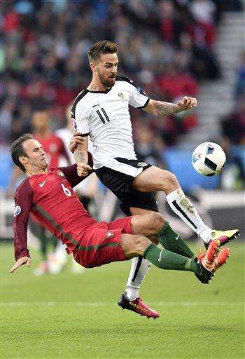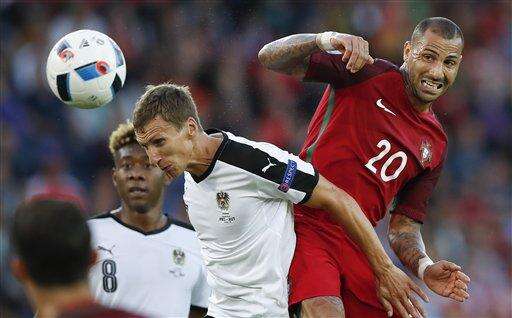 Austria goalkeeper Robert Almer was the initial barrier, blocking Nani's shot and tipping Vieirinha's effort wide in quick succession.