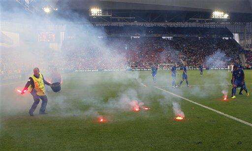 "Despite thorough body and bag searches at the stadium entrances, it is extremely difficult to completely eliminate the risk that fireworks are brought into the stadiums," UEFA said in a statement to The Associated Press.