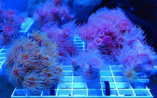In a Thursday, Feb. 11, 2016 photo, rare species of Hawaiian coral being used to create a seed bank grows in a tank at the Anuenue Fisheries Research Center’s coral nursery in Honolulu. Most of Hawaii’s species of coral is unlike other coral around the world in that it grows very slowly, making restoration projects for endangered reefs in the state difficult. But state officials have come with a plan to grow large chunks of coral in a fraction of the time it would normally take. (AP Photo/Caleb Jones) The Associated Press