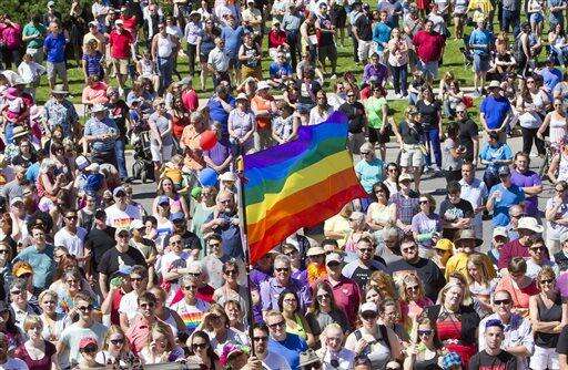 Thousands gather at Capitol Park in Boise, Idaho, for the annual PrideFest rally and parade Saturday, June 18, 2016. (Darin Oswald/Idaho Statesman via AP) MANDATORY CREDIT