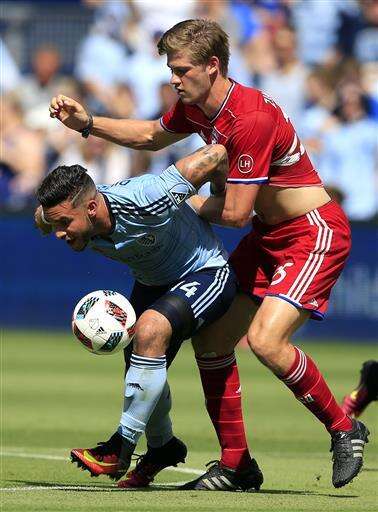 Kansas scored twice in four minutes just before halftime in beating Dallas.