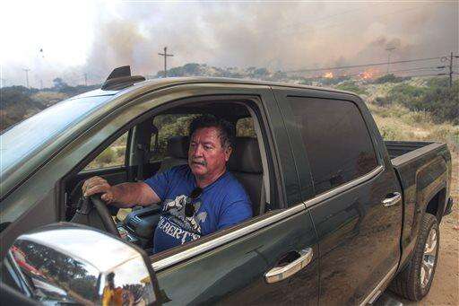 Another wildfire in the desert close to the Mexico border southeast of San Diego was holding at nearly 12 square miles after forcing the evacuation of about 75 people from a ranching community. Temperatures in the 90s were expected there Tuesday.