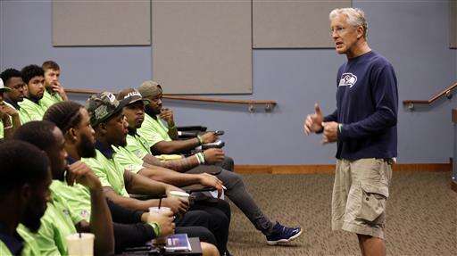 RENTON, Wash. (AP) - Pete Carroll stood at the front of the auditorium just like he would for any other meeting as the head coach of the Seattle Seahawks.