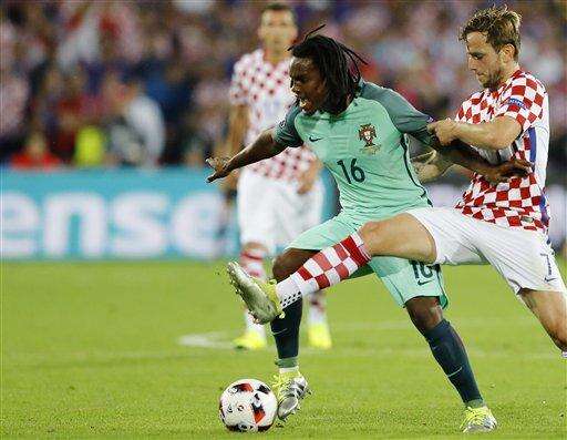 Portugal's Renato Sanches, left, is challenged by Croatia's Ivan Rakitic during the Euro 2016 round of 16 soccer match between Croatia and Portugal at the Bollaert stadium in Lens, France, Saturday, June 25, 2016. (AP Photo/Frank Augstein) The Associated Press