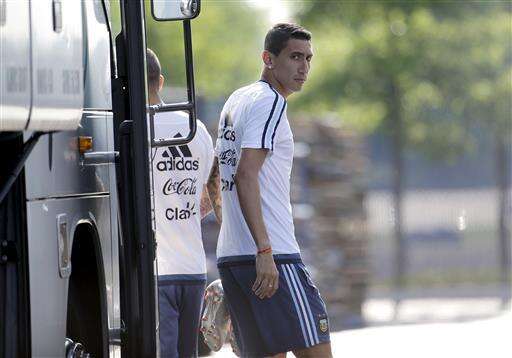 Argentina's Angel Di Maria arrives for a training session ahead of the team's Copa America final soccer match against Chile, Friday, June 24, 2016, in East Rutherford, N.J. (AP Photo/Julio Cortez) The Associated Press