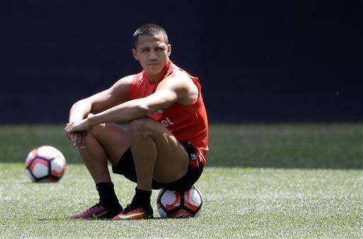 Chile's Alexis Sanchez sits on a ball during a training session ahead of their Copa America final soccer match against Argentina, Friday, June 24, 2016, in Harrison, N.J. Argentina and Chile will play for the championship Sunday at MetLife Stadium in East Rutherford, N.J. (AP Photo/Julio Cortez) The Associated Press