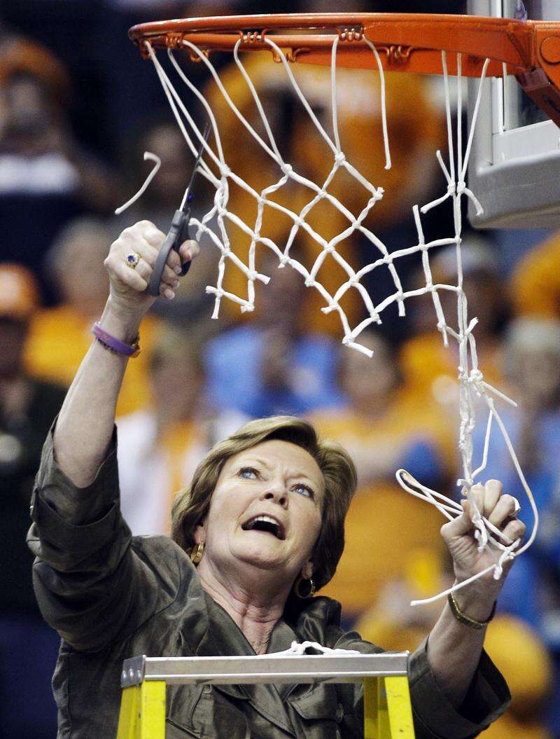 In this March 4, 2012, file photo, Tennessee head coach Pat Summitt cuts down the net after Tennessee defeated LSU to win the Southeastern Conference women's basketball tournament in Nashville, Tenn. Summitt, the winningest coach in Division I college basketball history who uplifted the women's game from obscurity to national prominence during her career at Tennessee, died Tuesday morning, June 28, 2016. She was 64.
