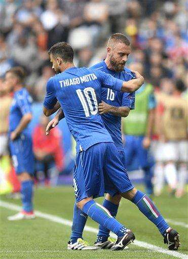 An additional problem for Conte is that De Rossi's replacement against Spain, Thiago Motta, was shown his second yellow card of the tournament and is suspended for Saturday's match in Bordeaux. And Antonio Candreva, who has missed the past two matches with a groin injury, will also be sidelined for the clash against the world champion.