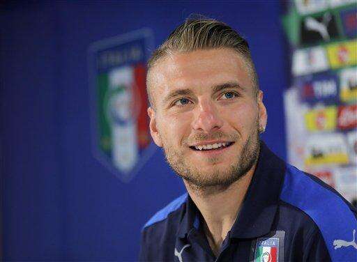 Italy's Ciro Immobile smiles prior to the start of a press conference at the "Casa Azzurri" in Montpellier, France, Wednesday, June 29, 2016. Italy will face Germany in a Euro 2016 quarter final soccer match in Bordeaux on Saturday, July 2, 2016. (AP Photo/Antonio Calanni) The Associated Press