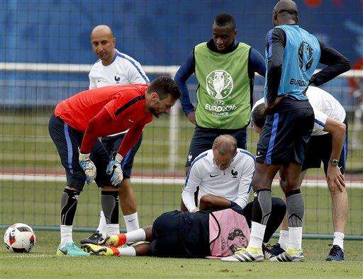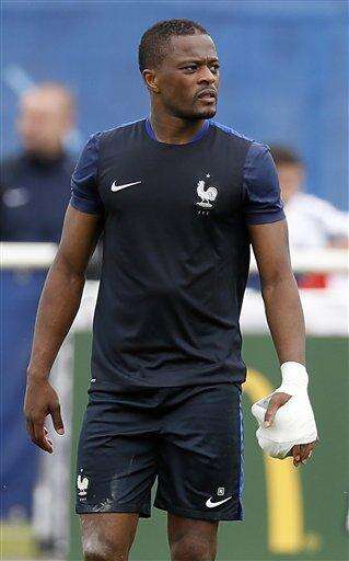 France left back Patrice Evra had an injury scare in training, when hurting his left hand after a collision with midfielder Moussa Sissoko.