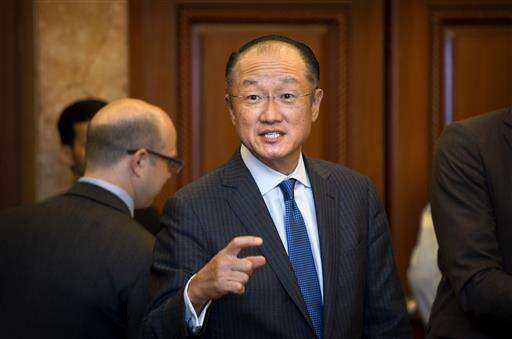 World Bank President Jim Yong Kim, center, talks to his colleague after signing a deal to boost solar energy globally, in New Delhi, India, Thursday, June 30, 2016. The World Bank Group Thursday signed an agreement with the International Solar Alliance, consisting of 121 countries led by India, to collaborate on increasing solar energy use around the world, with the goal of mobilizing $1 trillion in investment by 2030. (AP Photo/Manish Swarup)