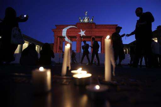 Wednesday saw the image of the Turkish flag projected onto several world sites including Berlin's Brandenburg Gate and Amsterdam's Royal Palace.