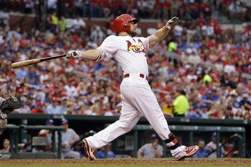 St. Louis Cardinals' Brandon Moss watches his solo home run during the fourth inning of a baseball game against the Kansas City Royals on Thursday, June 30, 2016, in St. Louis. (AP Photo/Jeff Roberson) The Associated Press
