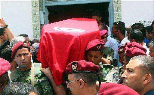 Family, friends and uniformed officers attended Friday's ceremony in Ksour Essef in central Tunisia for Col. Fathi Bayoudh, head of the pediatric service at the Tunis military hospital. The Tunisian government said he was among dozens killed in Tuesday's suicide bombing, blamed on IS.