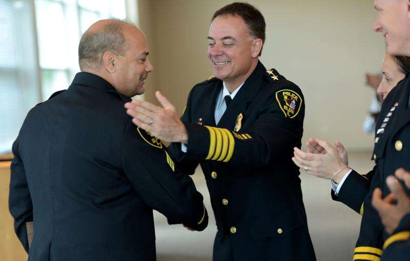 Sgt. Christopher Troiola retired after nearly 26 years of service, and Officer Rick Demierre was promoted to the rank of sergeant.