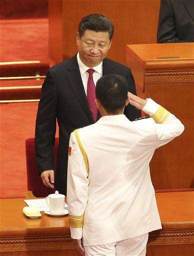 A Chinese military officer salutes President Xi Jinping before receiving an honor certificate during a ceremony to mark the 95th anniversary of the founding of the Communist Party of China at the Great Hall of the People in Beijing, Friday, July 1, 2016. (How Hwee Young/Pool Photo via AP) The Associated Press