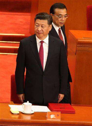 Chinese President Xi Jinping, front, and Premier Li Keqiang arrive for a ceremony to mark the 95th anniversary of the founding of the Communist Party of China at the Great Hall of the People in Beijing, Friday, July 1, 2016. (How Hwee Young/Pool Photo via AP) The Associated Press