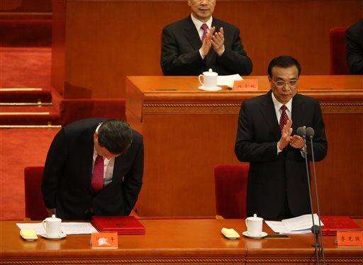 Chinese President Xi Jinping, left, bows as Premier Li Keqiang claps during a ceremony to mark the 95th anniversary of the founding of the Communist Party of China at the Great Hall of the People in Beijing, Friday, July 1, 2016. (How Hwee Young/Pool Photo via AP) The Associated Press