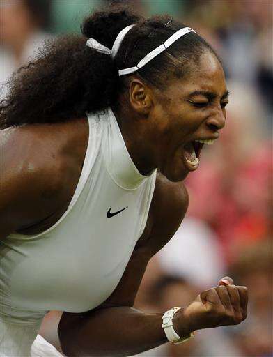 LONDON (AP) - Dismayed at dropping the first set after being a single point from taking it, Serena Williams sat in her Centre Court sideline chair and cracked her racket against the turf once, twice, three times, four.