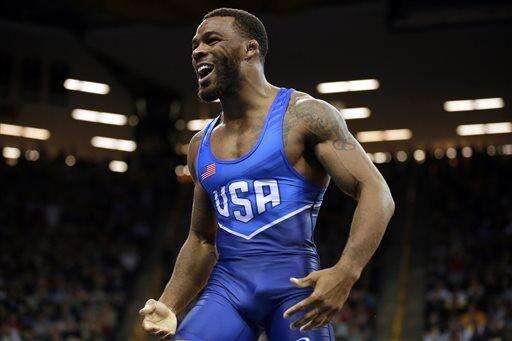 FILE - In this April 10, 2016, Jordan Burroughs celebrates after beating Andrew Howe in their 75-kilogram freestyle finals match at the U.S. Olympic Wrestling team trials in Iowa City, Iowa. Burroughs burst onto the international scene in 2011, winning a world title just six months after leaving the University of Nebraska. (AP Photo/Charlie Neibergall, File) The Associated Press