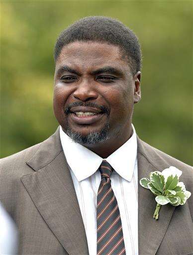 Pallbearer Clyde Simmons speaks with reporters about his memories of Buddy Ryan outside the Ritchie & Peach Funeral Home, Friday, July 1, 2016, in Lawrenceburg Ky. Ryan was remembered not just as a defensive master who won two Super Bowls and spawned a legacy carried on by players and twin sons now coaching in the NFL. He also motivated players with a gruff but caring approach that helped them succeed on the field and in life. (AP Photo/Timothy D. Easley) The Associated Press