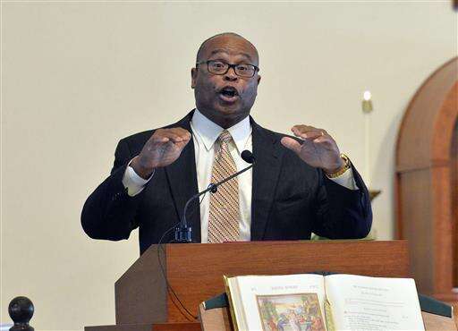Mike Singletary gives the eulogy for his friend and former coach Buddy Ryan at St. Lawrence Catholic Church, Friday, July 1, 2016 in Lawrenceburg Ky. Ryan passed away on June 28, 2016. (AP Photo/Timothy D. Easley) The Associated Press