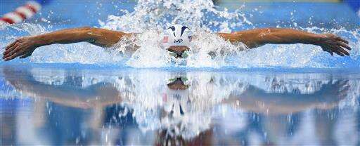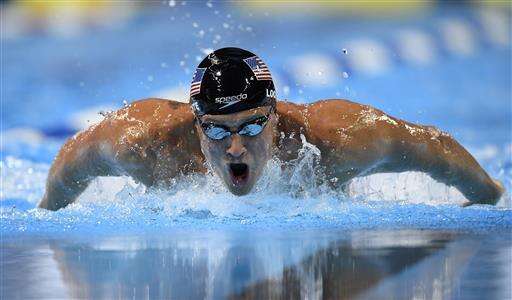 Michael Phelps swims in a men's 100-meter butterfly semifinal at the U.S. Olympic swimming trials, Friday, July 1, 2016, in Omaha, Neb. (AP Photo/Mark J. Terrill) The Associated Press