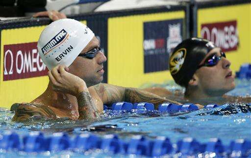 Anthony Ervin and Nathan Adrian were the top two qualifiers in the semifinals of the 50 freestyle. The 35-year-old Ervin led the way in 21.55, while Adrian was second quickest in 21.60. Both men are already on the team, with Ervin still seeking an individual event to go with his relay duty and Adrian set to defend his 100 free title from the London Games.