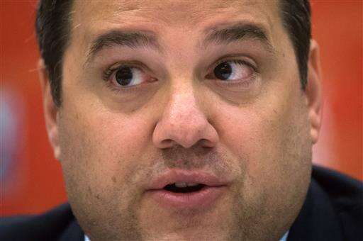 FILE - In this June 4, 2015, file photo, then-Canadian Soccer Association president Victor Montagliani speaks during a press conference in Vancouver. CONCACAF president Victor Montagliani speaks about the past, present and future of the North, Central America and Caribbean football confederation in a wide ranging round table where he touches on the group finances, the recently concluded Copa America Centenario, the dangers of future corruption scandals and even the correct pronunciation of his last name. (Darryl Dyck/The Canadian Press via AP, File) MANDATORY CREDIT The Associated Press