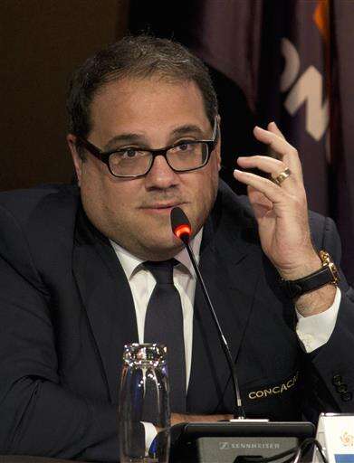 FILE - In this May 12, 2016, file photo, Victor Montagliani, new president of The Confederation of North, Central America and Caribbean Association Football, CONCACAF, speaks during a press conference in Mexico City. CONCACAF president Victor Montagliani speaks about the past, present and future of the North, Central America and Caribbean football confederation in a wide ranging round table where he touches on the group finances, the recently concluded Copa America Centenario, the dangers of future corruption scandals and even the correct pronunciation of his last name. (AP Photo/Eduardo Verdugo, File) The Associated Press