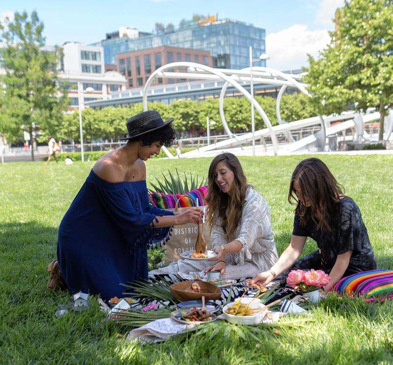 We asked her to imagine an after-work gathering for a group of friends at Yards Park, the riverfront expanse in Southeast Washington with cooling fountains and green terraces.