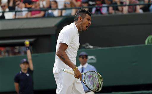 Kyrgios, an Australian seeded 15th at the All England Club, advanced by beating No. 22 Feliciano Lopez 6-3, 6-7 (2), 6-3, 6-4 on Sunday in a match that was suspended by darkness a night earlier.