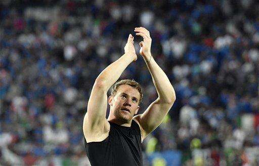 Germany goalkeeper Manuel Neuer celebrates at the end of the Euro 2016 quarterfinal soccer match between Germany and Italy, at the Nouveau Stade in Bordeaux, France, Saturday, July 2, 2016. Germany defeated Italy 6-5 in a penalty shootout after the game ended tied 1-1. (AP Photo/Martin Meissner) The Associated Press