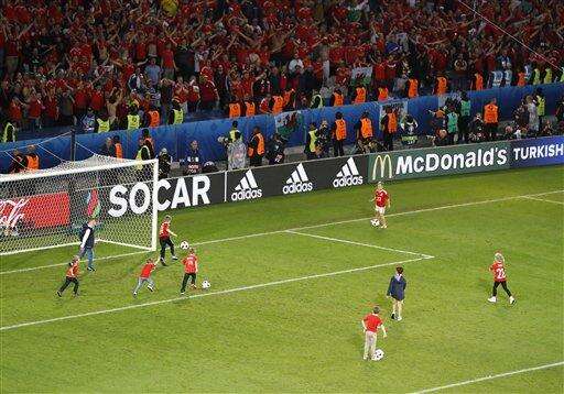 Children of Wales' players play on the pitch after the Euro 2016 quarterfinal soccer match between Wales and Belgium, at the Pierre Mauroy stadium in Villeneuve d’Ascq, near Lille, France, Friday, July 1, 2016. (AP Photo/Michael Sohn) The Associated Press