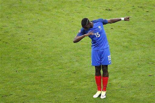 France's Paul Pogba celebrates after scoring his side's second goal during the Euro 2016 quarterfinal soccer match between France and Iceland, at the Stade de France in Saint-Denis, north of Paris, France, Sunday, July 3, 2016. (AP Photo/Michael Sohn) The Associated Press
