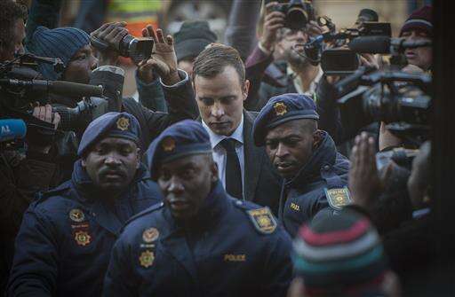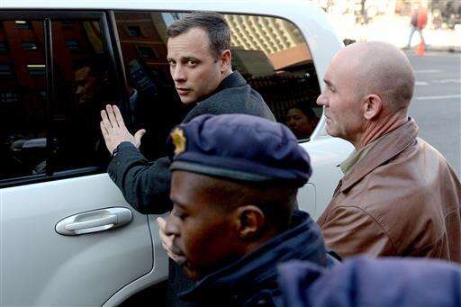 Later, a convoy of police cars with lights flashing and sirens wailing left a side entrance of the courthouse. In the convoy was a van with tinted windows, possibly carrying Pistorius.