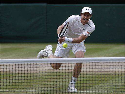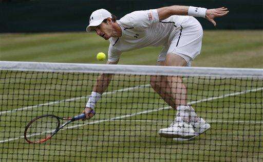 Andy Murray of Britain reaches down to play a return to Jo-Wilfried Tsonga of France during their men's singles quarterfinal match on day ten of the Wimbledon Tennis Championships in London, Wednesday, July 6, 2016. (AP Photo/Ben Curtis) The Associated Press
