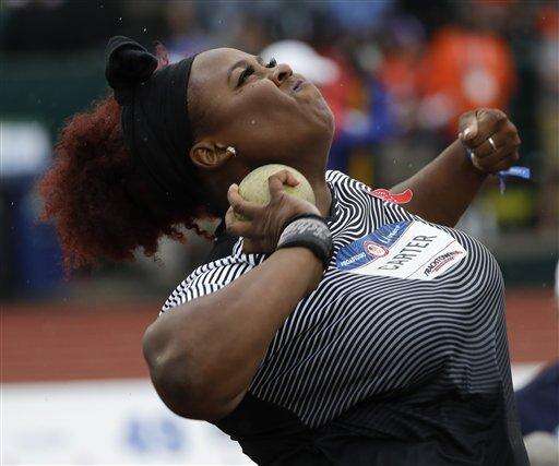 Michelle Carter competes during the women’s shop put final at the U.S. Olympic Track and Field Trials, Thursday, July 7, 2016, in Eugene Ore. (AP Photo/Matt Slocum) The Associated Press