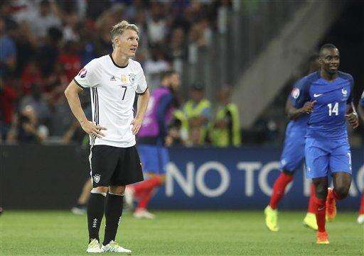 MARSEILLE, France (AP) - Bastian Schweinsteiger barely put a foot wrong in the first half of Germany's European Championship semifinal against France. It was his hand that got him and his team into trouble.