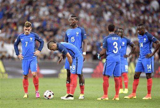 France: Hugo Lloris, Bacary Sagna, Samuel Umtiti, Laurent Koscielny, Patrice Evra, Paul Pogba, Blaise Matuidi, Moussa Sissoko, Antoine Griezmann, Dimitri Payet, Olivier Giroud.
