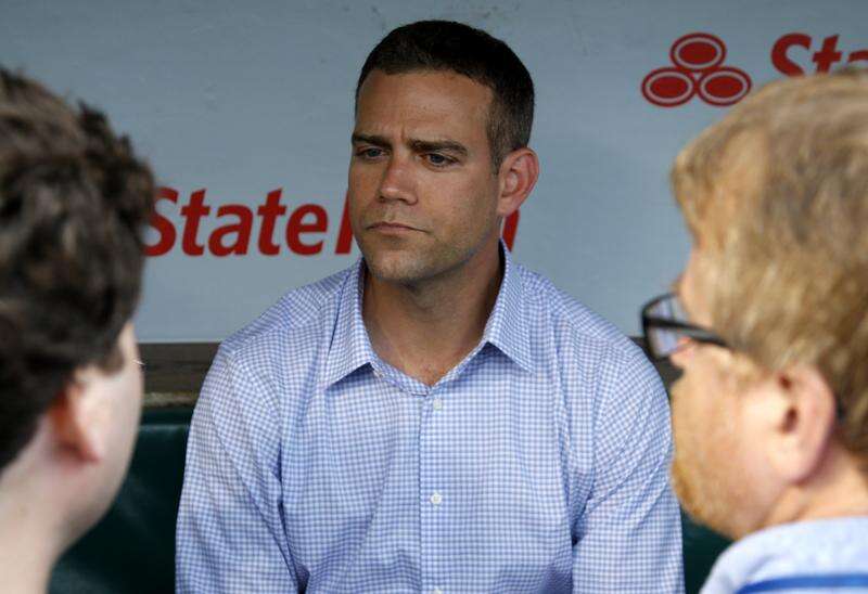 Chicago Cubs President Theo Epstein talks to reporters at Wrigley Field before Thursday's game against the Atlanta Braves. Associated Press