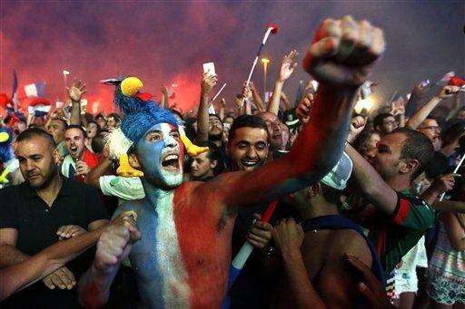 Perhaps best of all, and because football is a sport that so celebrates and encourages these things, the tournament and the team's success has opened the gates for mass French silliness; allowed them to be wacky, bonkers, cuckoo and to go bananas; to yelp, shriek, howl and yowl; to have beer for breakfast; to bounce up and down together so vigorously in the Metro that it seems carriages could jump their tracks; to walk around with stuffed cockerels on their heads, with faces painted red, white and blue and in body-hugging skin-tight suits that unfortunately leave nothing to the imagination.